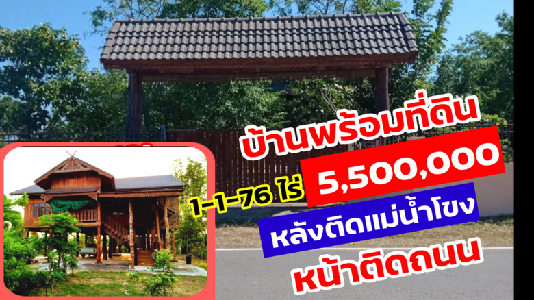 ขายบ้านไม้สัก ประดู่และมะค่า เนื้อที่ 1-1-76 ตรว. หน้าติดถนนดำ หลังติดแม่น้ำโขง
